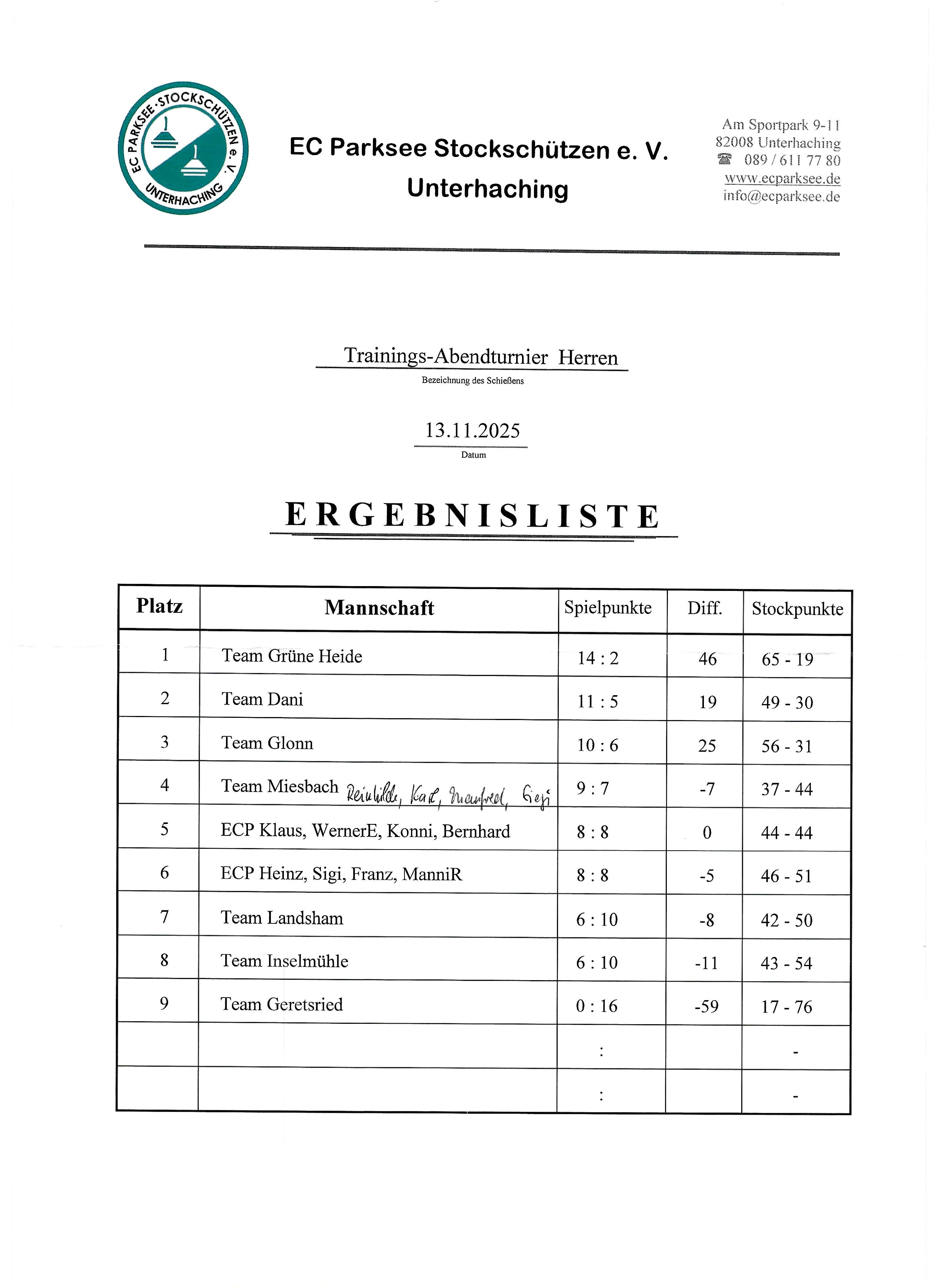 13.11.2025 – EC Parksee Stockschützen e.V. geschrieben von Rosemarie Weber 17.03.2026 10 0 FacebookPinterestEmail Rosemarie Weber zurück Nachwuchsbericht 6.3.-8.3.26: TEV-Nachwuchs glänzt mit Kantersiegen weiter 15.11.2025 Related Posts 15.11.2025 – Turnier Weißbiercup Brauerei Hopf 17.03.2026 15.11.2025 17.03.2026 Int. DUO Cup 10.02.2026 BEV – Bezirkspokal Herren Ü50 – 25.10.2025 11.11.2025 Mannschaftspiel auf Eis 23.10.2025 DUO-Mixed Turnier 23.10.2025