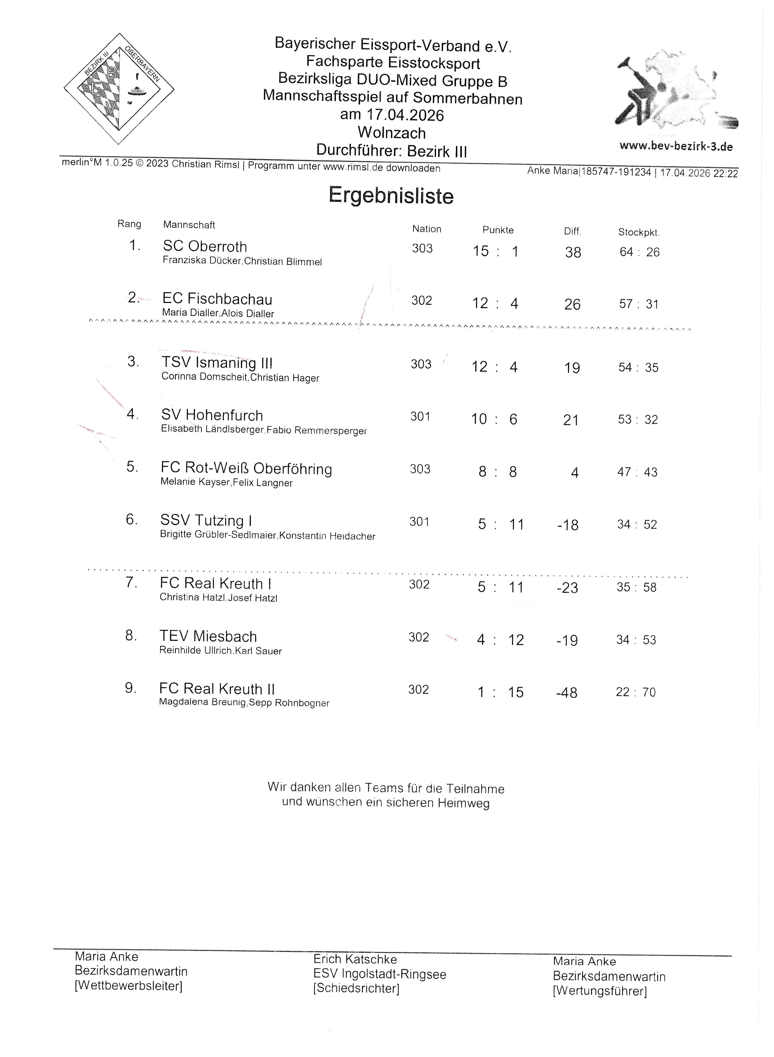 Bezirksliga DUO-Mixed Gruppe B – Mannschaftsspiel auf Sommerbahnen